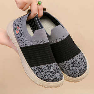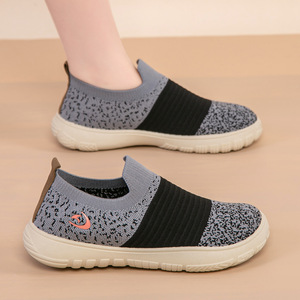 女鞋春秋季飞织拖鞋中老年妈妈透气休闲鞋一脚蹬简约鞋子批发舒适
