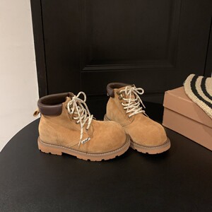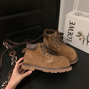 2025秋季厚底牛皮反做马丁靴子复古短靴系带大黄靴女鞋马丁靴女