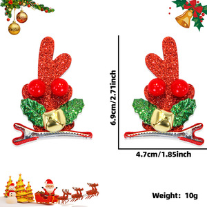卡通宠物圣诞帽发夹发饰狗狗毛发夹圣诞节雪花鹿角边夹派对装饰品