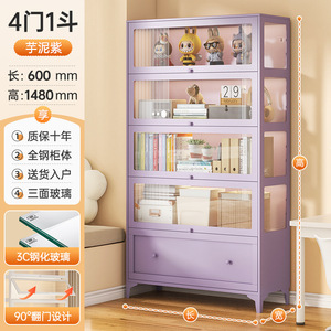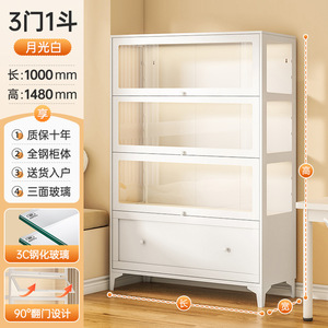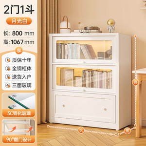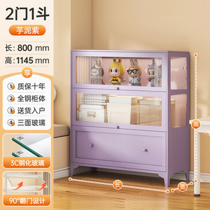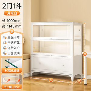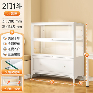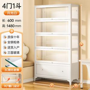 家用钢制玻璃防尘柜手办展示柜客厅卧室多层落地带抽屉款铁皮斗柜