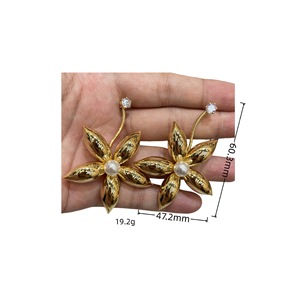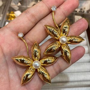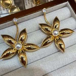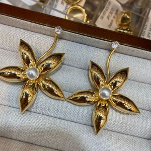 复古法式夸张气质高级感金属花朵珍珠耳环小众设计简约百搭耳饰潮