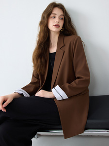 咖啡色休闲百搭西装外套女春秋季2025新款设计感廓形宽松西服上衣