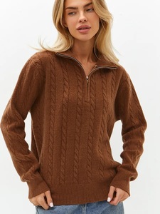 跨境亚马逊秋冬软糯针织上衣复古麻花半拉链慵懒百搭短款毛衣外套