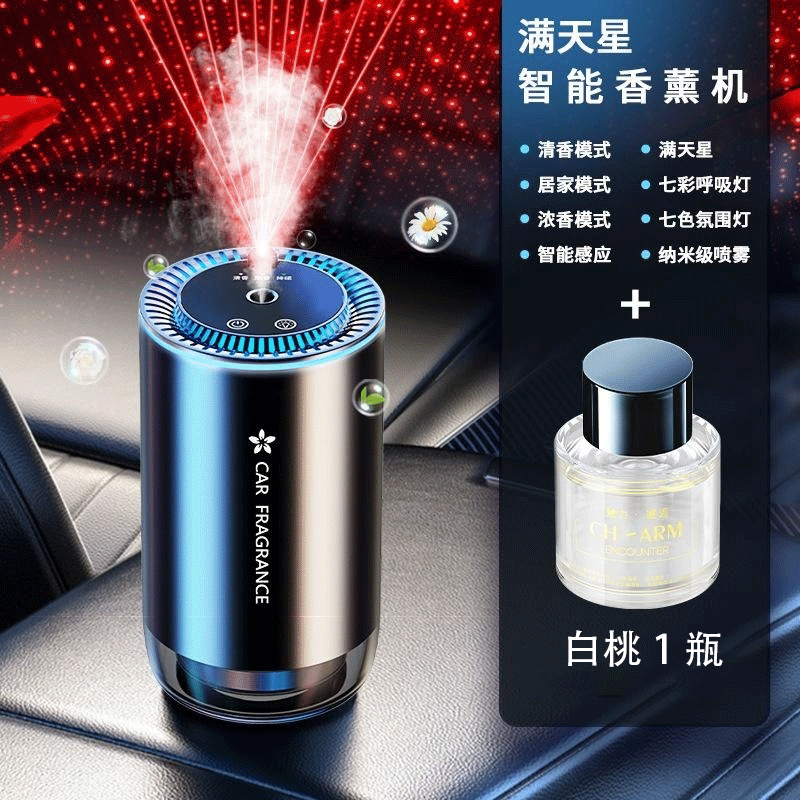 厂家批发AI智能随车即停车载香薰机 星空顶氛围灯自动喷香加湿器