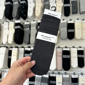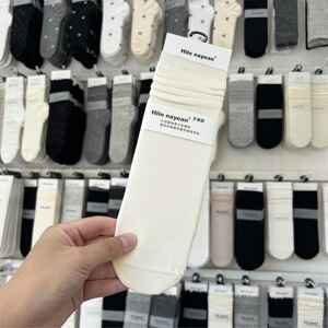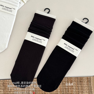 Hilo nayean南业袜子秋冬新款女袜中筒袜纯棉无骨韩系卷边堆堆袜