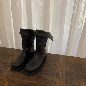 牛皮版~开叉翻折复古马丁靴真皮西部牛仔靴女厚底骑士中筒靴短靴