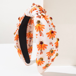 亚马逊爆款感恩节元素发箍枫叶火鸡印花布艺钉珠镶钻时尚节日发饰