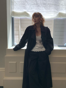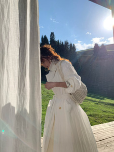 2025秋季新款 简约经典气质老钱风廓形风衣女翻领绑带双排扣外套