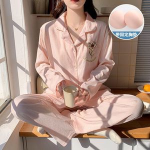云朵棉睡衣女春秋款带胸垫一体长袖甜美小香风宽松女士家居服套装