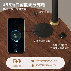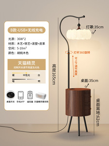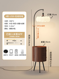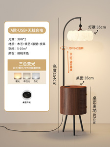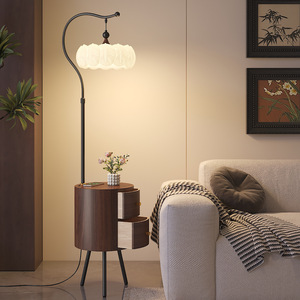 中古风落地灯法式复古胡桃木色氛围感客厅沙发旁卧室床头柜一体灯
