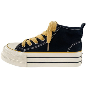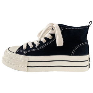 6674厚底增高高帮帆布鞋女2025新款港风爆款复古圆头小众百搭板鞋
