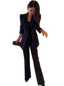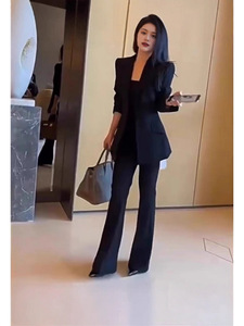 2901预售款大码女装职业休闲西装套装胖mm中长款西服长裤两件套