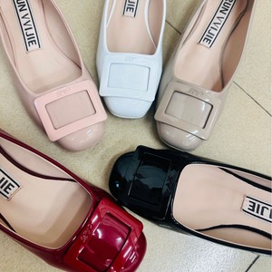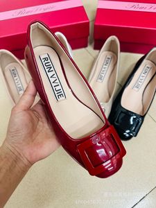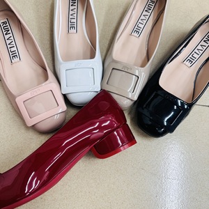 方扣粗跟单鞋小红鞋浅口圆头小香风中跟鞋婚礼玛丽珍鞋女时尚百搭