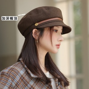 春秋季新款宽檐显脸小八角帽子女英伦风复古百搭海俊帽鸭舌贝雷帽