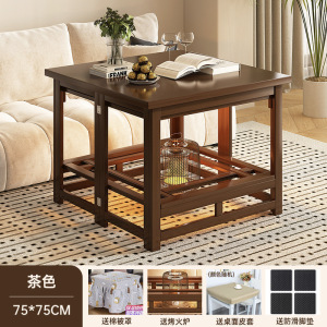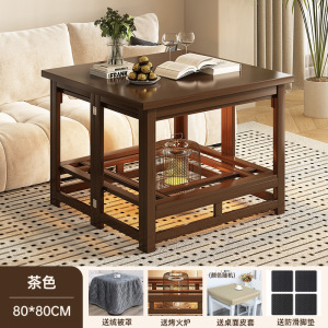 茶色75全竹桌+烤火炉+棉质被+皮罩