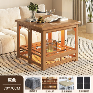 原色70全竹桌+烤火炉+棉质被+皮罩