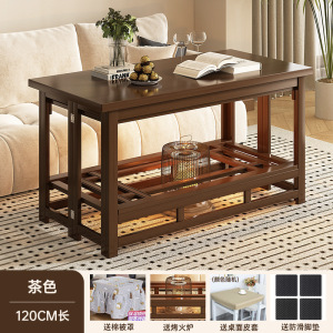 茶色120全竹桌+烤火炉+绒被+皮罩
