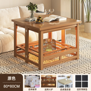 茶色80全竹桌+烤火炉+绒被+皮罩