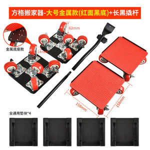 大号--方格搬家器-金属款(红面黑底)+长黑撬杆方格搬家器-大号金属款(红面黑底)+长黑撬杆