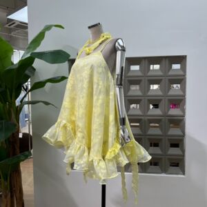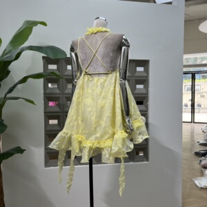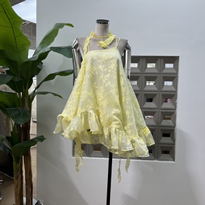 亚马逊小众暗纹提花不规则荷叶边吊带连衣裙+白色短裤夏日度假