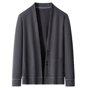 【绵羊毛】秋冬季针织开衫男士加厚长袖外套时尚休闲披风保暖上衣