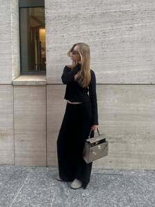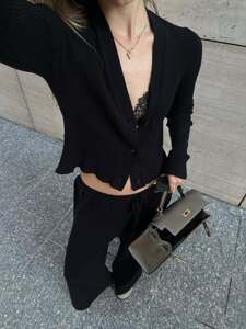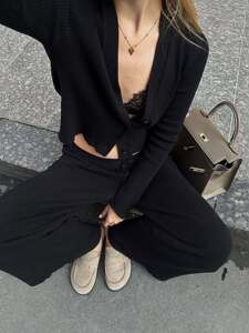 2025修身显瘦软糯V领针织开衫女士秋装简约通勤宽松长裤子套装女