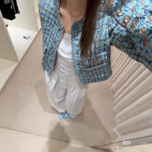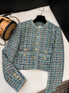 2025夏季新款南油cha时尚名媛小香风宽松减龄撞色圆领长袖外套女