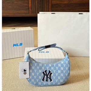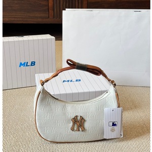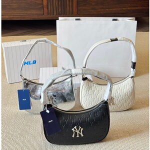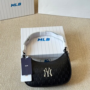 25新款MLB复古老花刺绣腋下包潮流时尚单肩手提包金属压花饺子包