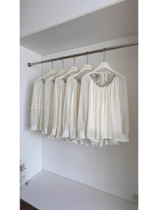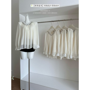 秋款/娇贵富美重工珍珠亮片抽褶露背雪纺衬衫系带纯欲上衣