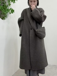 2025韩版学院风橄榄包包两件套阔版加长款双面羊毛大衣女毛呢