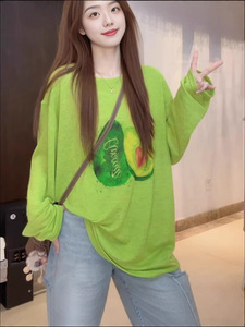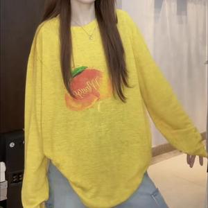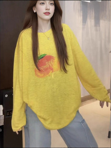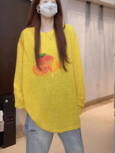 【自家工厂现货】韩系彩色印花圆领长袖t恤女夏季慵懒风百搭罩衫