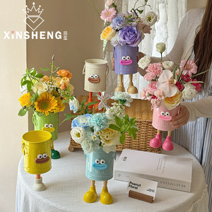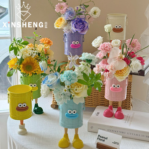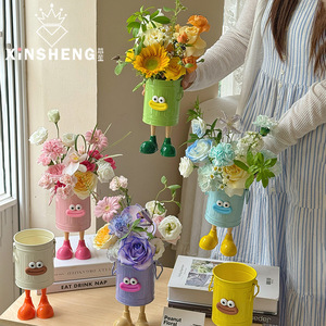 芯苼 小丑怪手提小圆桶鲜花束插花桶装饰摆件花店花艺diy包装资材