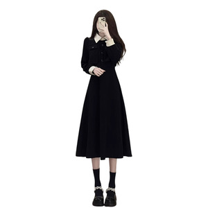春秋季新款连衣裙撞色翻领气质收腰线假两件裙子感小众连衣裙女装