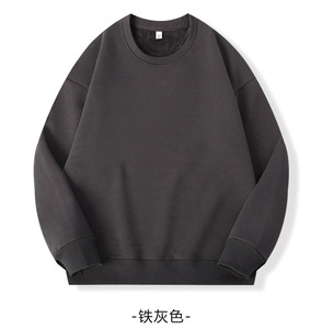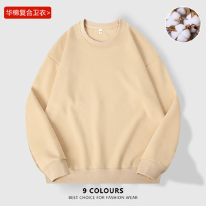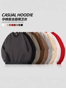 跨境秋冬新款纯色上衣宽松落肩休闲百搭华棉圆领卫衣批发定制logo