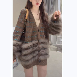 灰色V领长袖毛衣外套女2025秋冬新款减龄洋气轻奢百搭高级感开衫