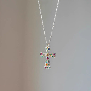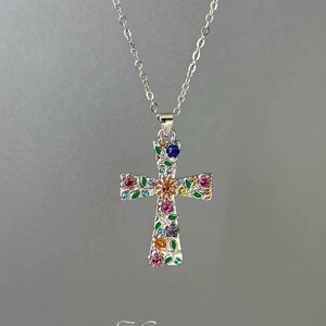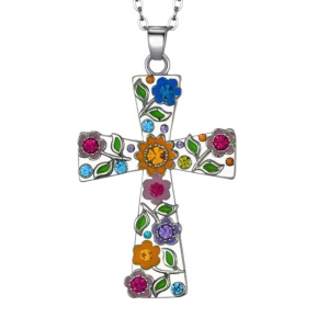 亚马逊跨境外贸新品Vintage古着Garden Cross彩色花朵十字架项链