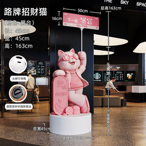 中号招财猫粉色+底座【总高163CM】
