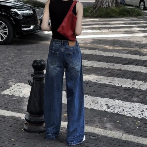 大码阔腿牛仔裤女早秋2025新款高腰胖mm显瘦宽松美式复古直筒裤子