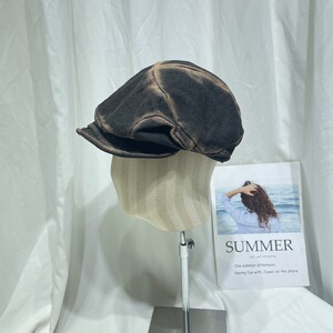 水洗做旧褶皱贝雷帽子女美式复古百搭显脸小八角帽文艺画家报童帽