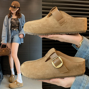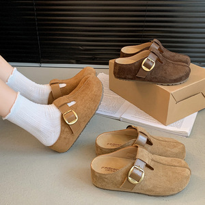 内增高勃肯鞋女外穿2025秋季新款一脚蹬包头半拖鞋厚底休闲拖鞋女