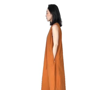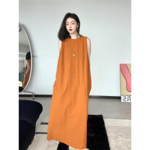 夏季新款时尚韩版梨形身材穿搭宽松休闲减龄百搭橙色无袖连衣裙女