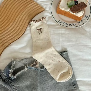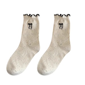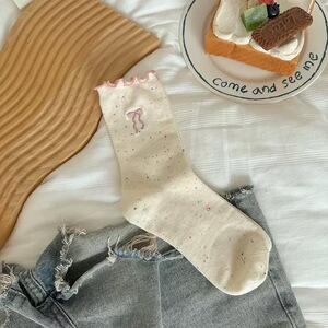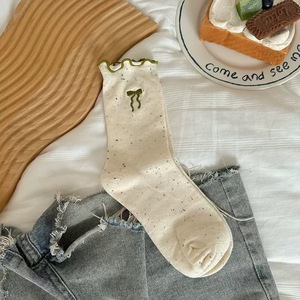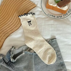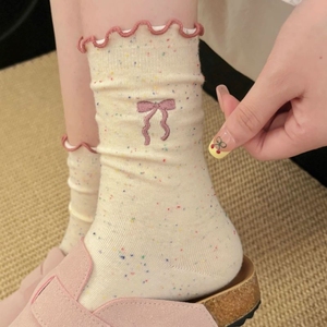 蝴蝶结袜子女春秋款堆堆袜日系可爱木耳边防臭纯棉中筒袜配勃肯鞋