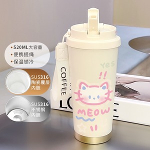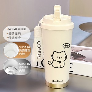 高颜值保温杯水杯子咖啡杯吸管便携办公室男女316不锈钢送礼物