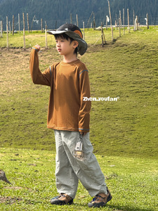 祯有范童装男童T恤2025春秋新款儿童莱赛尔长袖男孩亲肤撞色上衣