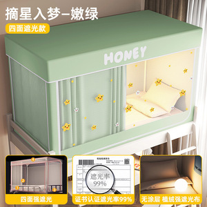 宿舍床帘学生蚊帐无涂层强遮光帘一体式全包床幔窗帘寝室上下铺用
