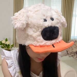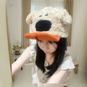 2025秋冬新款毛绒帽子女可爱小狗吐舌头鸭舌帽卡通显脸小保暖帽子