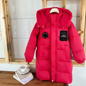 秋冬季儿童中长款羽绒服男童女童中大童加厚连帽过膝休闲外套童装
