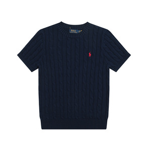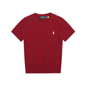 高品质拉夫战马渐变多彩色点百搭休闲时尚大麻花针织圆领短袖