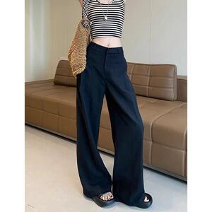 白色苎麻阔腿裤女夏季薄款高腰垂感老钱风西装直筒亚棉麻休闲裤子
