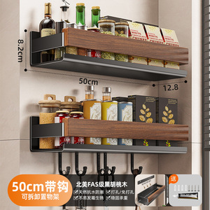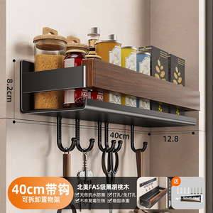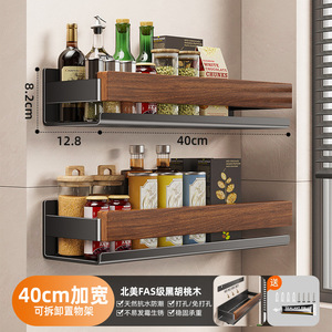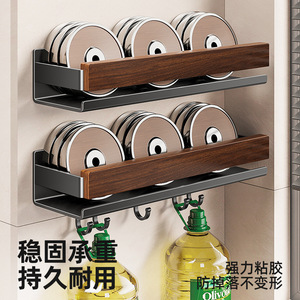胡桃木厨房置物架中古风壁挂式免打孔多层锅盖刀筷勺子调料收纳架